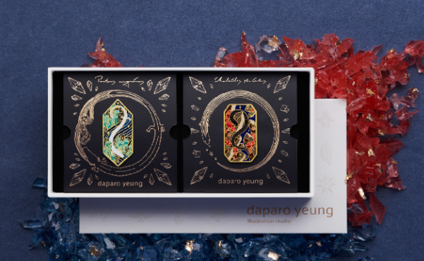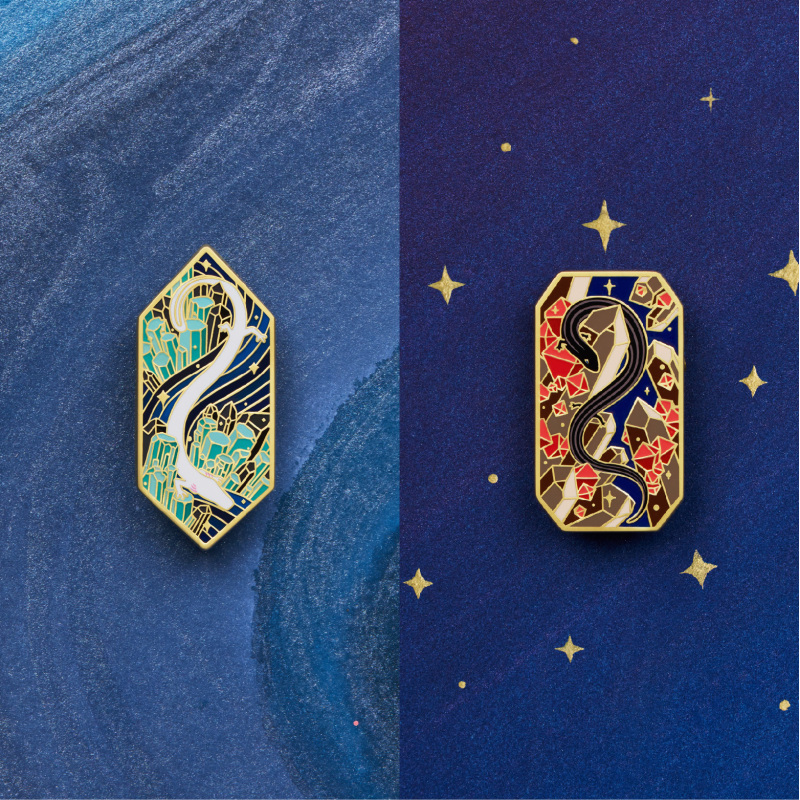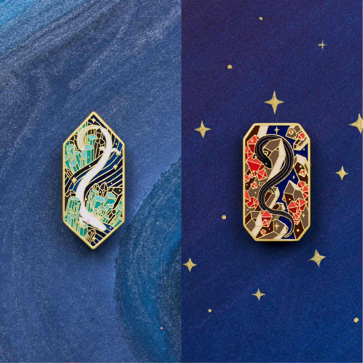 Color classification: cave newt and aquamarine three-toed skink and red fluorite set