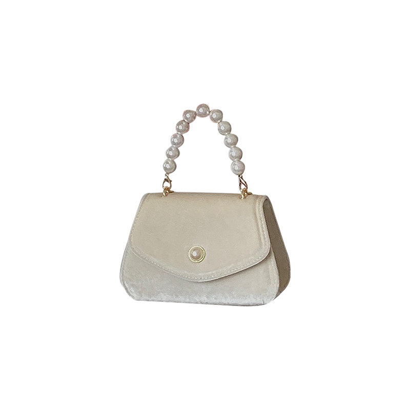 French Retro Pearl Portable Small Square Bag Female Autumn And Winter New Suede Chain Dinner Bag Messenger Shoulder Bag