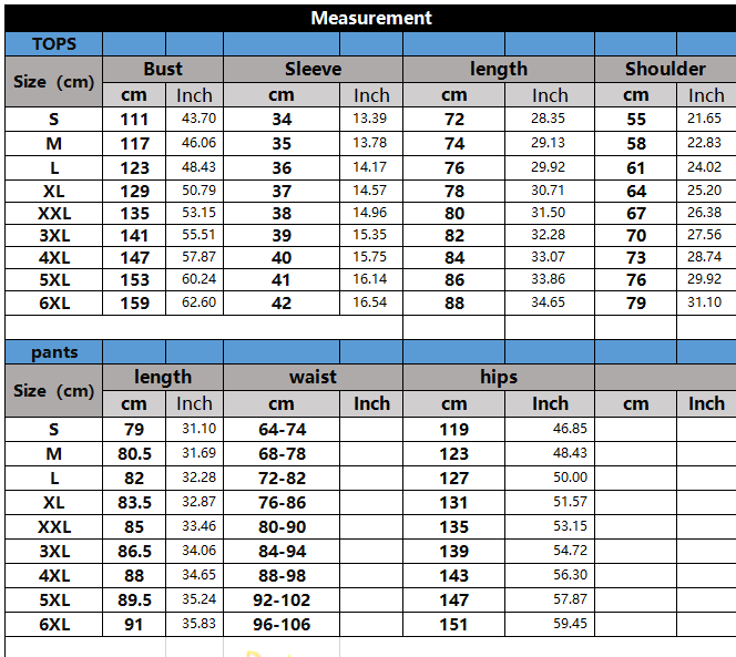 Size: XS, S, M, L, XL, XXL, 3XL, 4XL, 5XL, 6XL