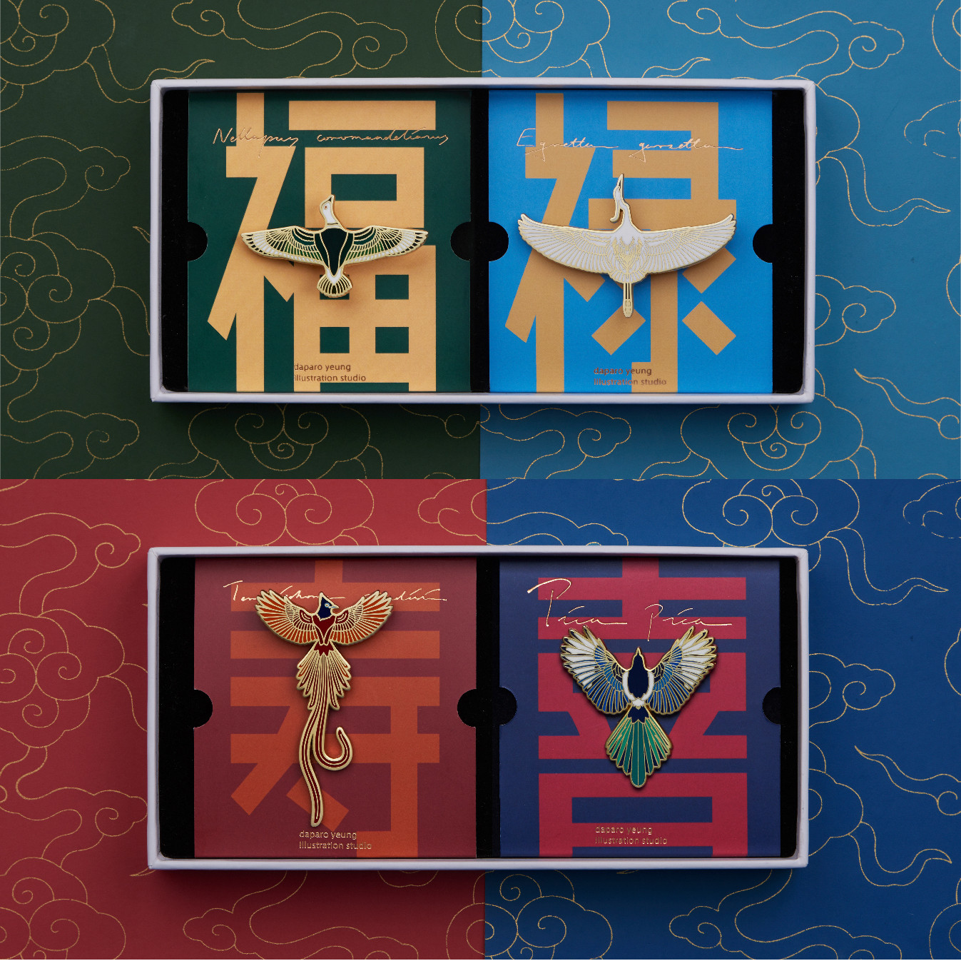 Color classification: A-cotton mallard, B-double blessing, C-fu+lu, D-fu+shou, E-fu+xi, F-fulu-shouxi