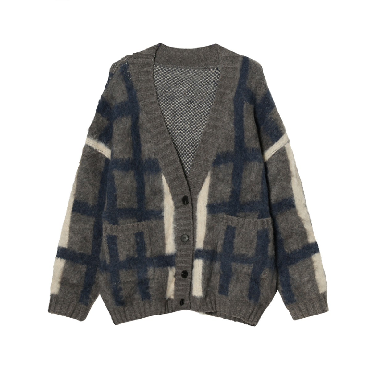 cuibuju/20aw BF wind cardigan jacket men's autumn and winter Korean style plaid mohair knitted sweater men's jacket