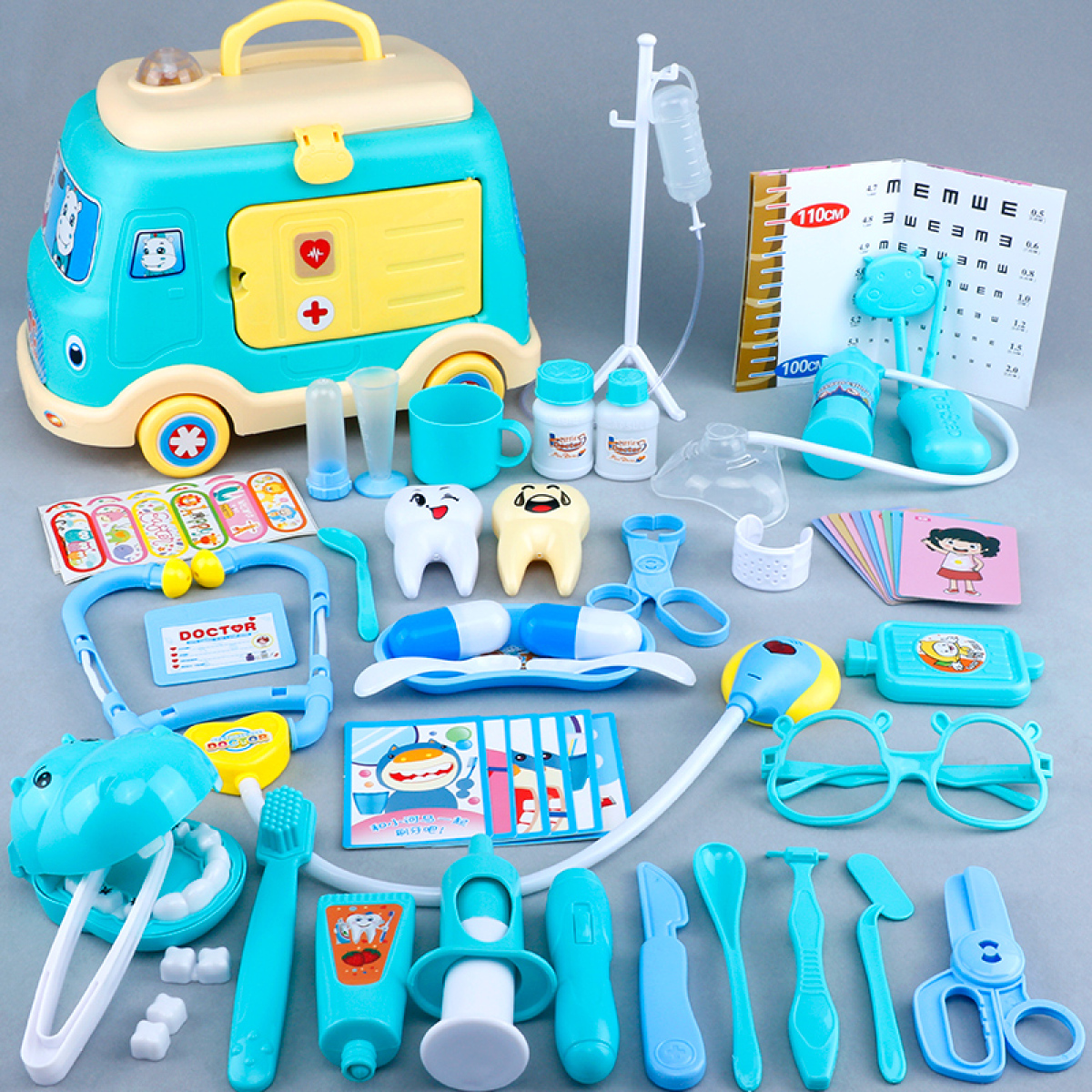 Color classification: 55 ambulances [including hippo fillings + oxygen bottle] 56 blue-green ambulances [including hippo fillings + oxygen bottle + doll] 58 blue-green ambulances [including fillings + oxygen bottle + doll + doctor uniform hat] 66 blue-green ambulances [with fillings + oxygen cylinder + doll + sphygmomanometer] 68 blue-green ambulances [including fillings + oxygen bottle + doll + sphygmomanometer + doctor uniform hat] 55 blue-green ambulances [including hippo fillings +Oxygen Cylinder] 56 Rose Pink Ambulances [Include Hippo Filling + Oxygen Cylinder + Doll] 58 Rose Pink Ambulances [Including Denture + Oxygen Cylinder + Doll + Nurse Hat] 66 Rose Pink Ambulances [Include Teeth Filling + Oxygen Bottle + doll + sphygmomanometer] 68 pieces of rose pink ambulance [with fillings + oxygen bottle + doll + sphygmomanometer + nurse uniform hat] rose pink children play