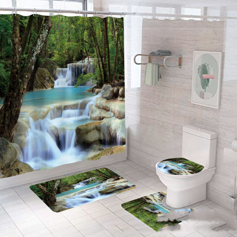 Such as 180X180 4pcs set: toilet seat + u-shaped mat + floor mat + 180X180 shower curtain
