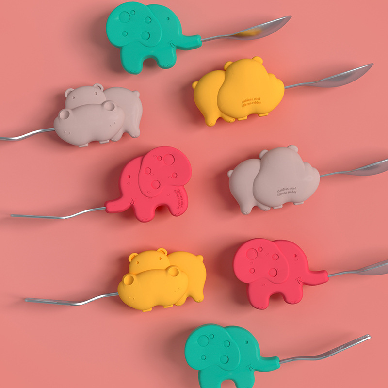 D: Pink hippo fork and spoon set,