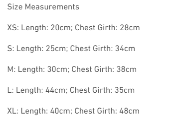 Size: XS is suitable for 2-3 kg, S 3.5-4 kg, M is suitable for 5-7 kg, L is suitable for 8-10 kg, and XL is suitable for 11-14 kg.