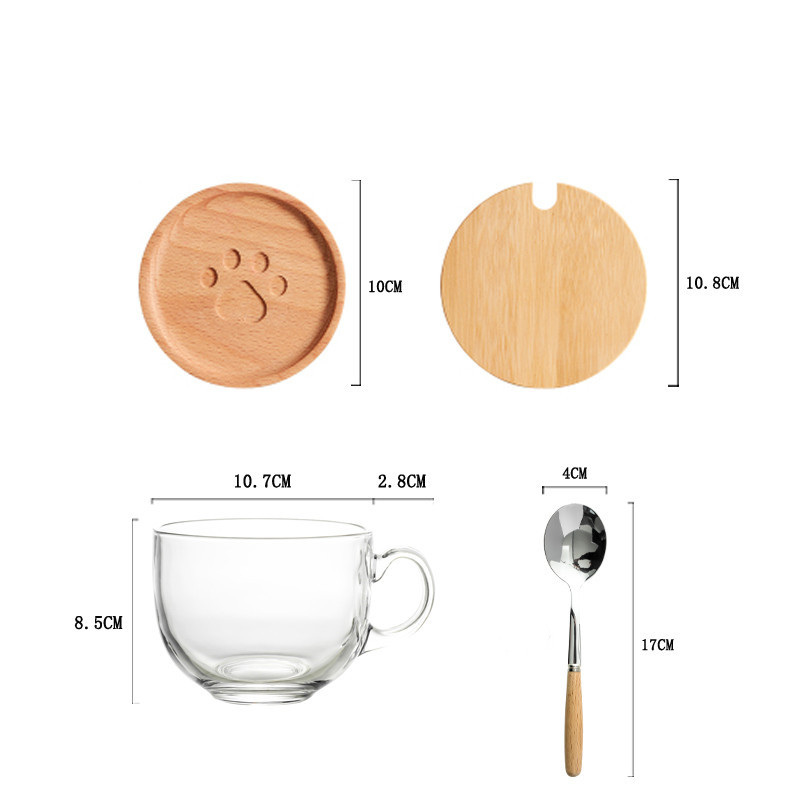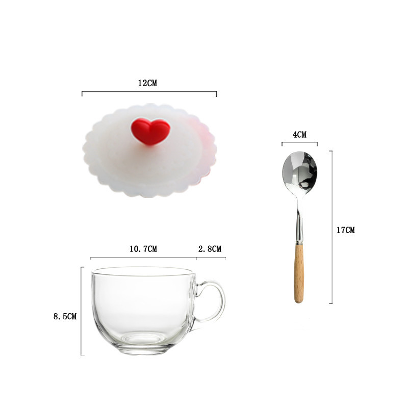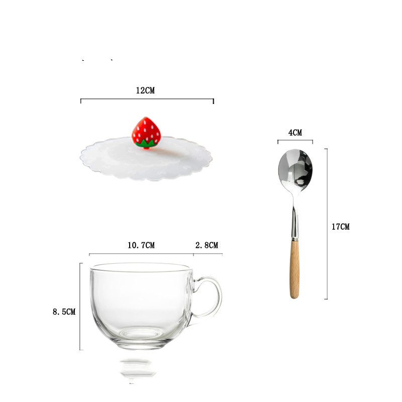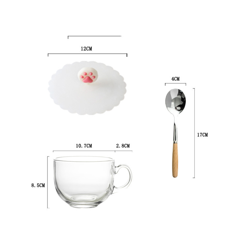 Color classification: A: tempered cup + spoon + bamboo lid B: tempered cup + spoon + silicone lid (cat's claw) C: tempered cup + spoon + silicone lid (peach heart) D: tempered cup + spoon + silicone lid (Strawberry) E: Tempered Cup+Spoon+Bamboo Lid+Wooden Mat