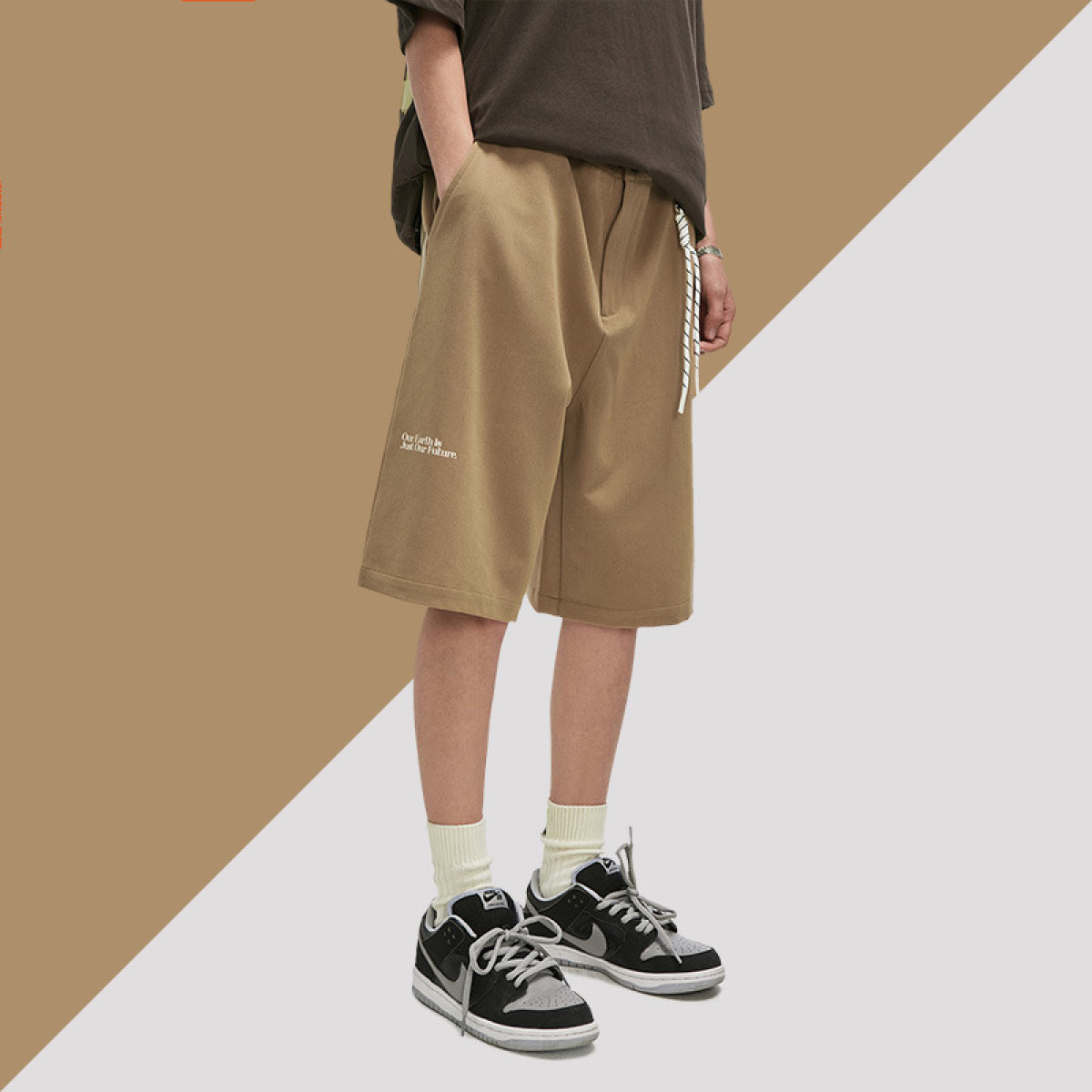 Letter Print Drawstring Straight Loose Track Shorts