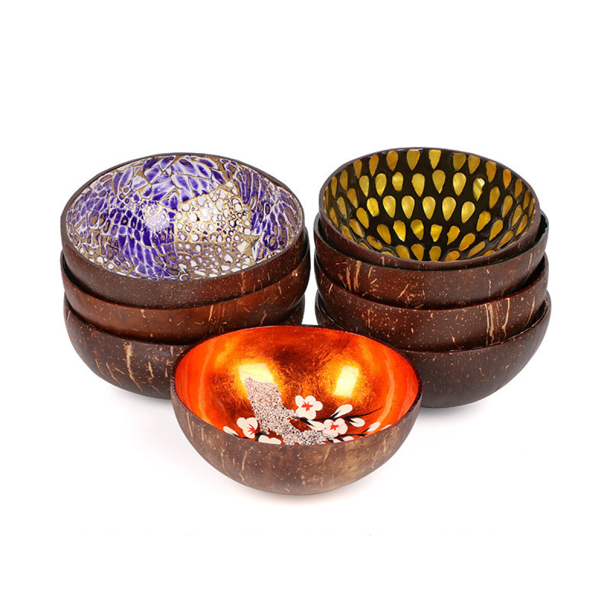 Coconut Shell Bowl Natural Shell Inlaid Color Coconut Shell Tableware Bowl Home Decoration Storage Bowl Thai Decoration