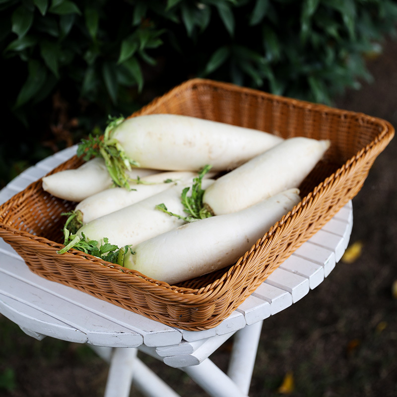 Plastic Hand-Woven Supermarket Snack Storage Basket Fruit And Vegetable Box Bread Basket, Rectangle
