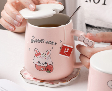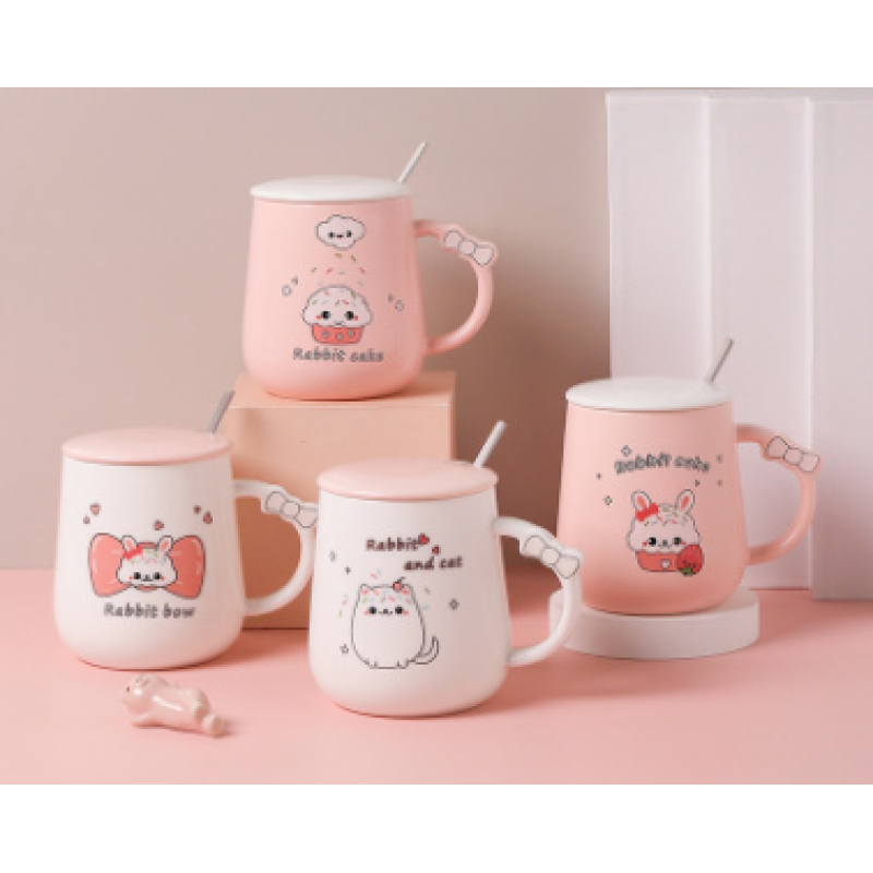 Color: A cute rabbit cup-A (spoon with lid), B cute rabbit cup-B (spoon with lid), cute rabbit cup-C (spoon with lid), cute rabbit cup-D (spoon with lid) )