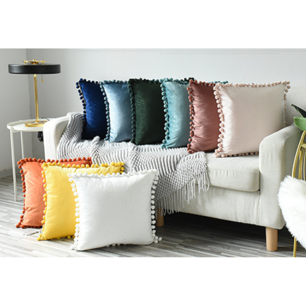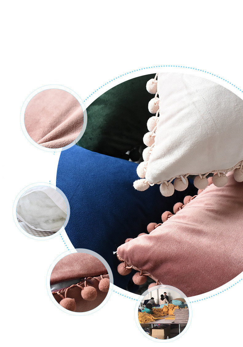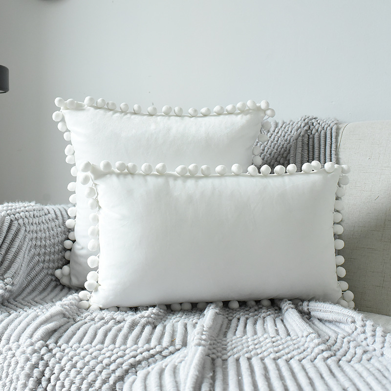 Ins Style Home Fabric Model Room Sofa Ball Pillowcase Hair Ball Velvet Sofa Cushion Rectangle