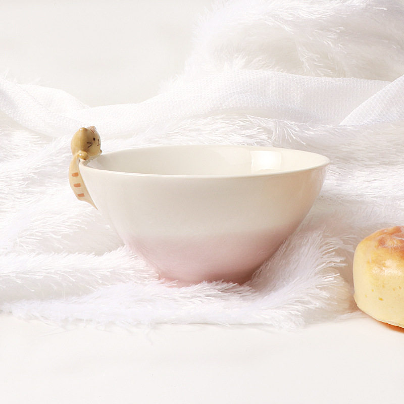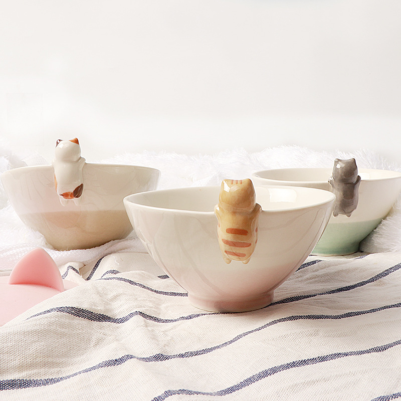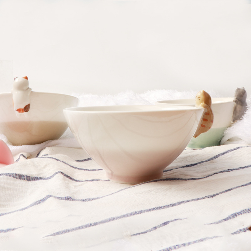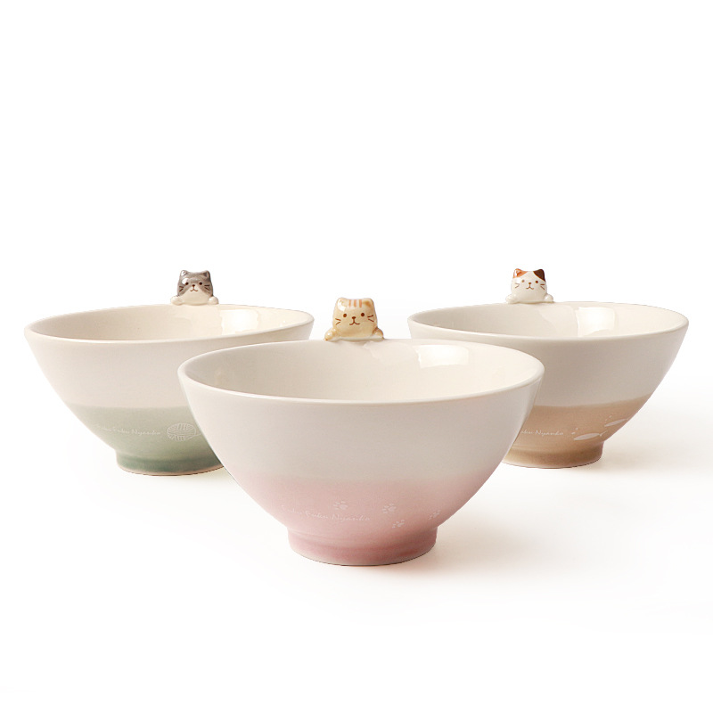 Color: Cyan black cat bowl, pink orange cat bowl, brown flower cat bowl, a set of three cat bowls