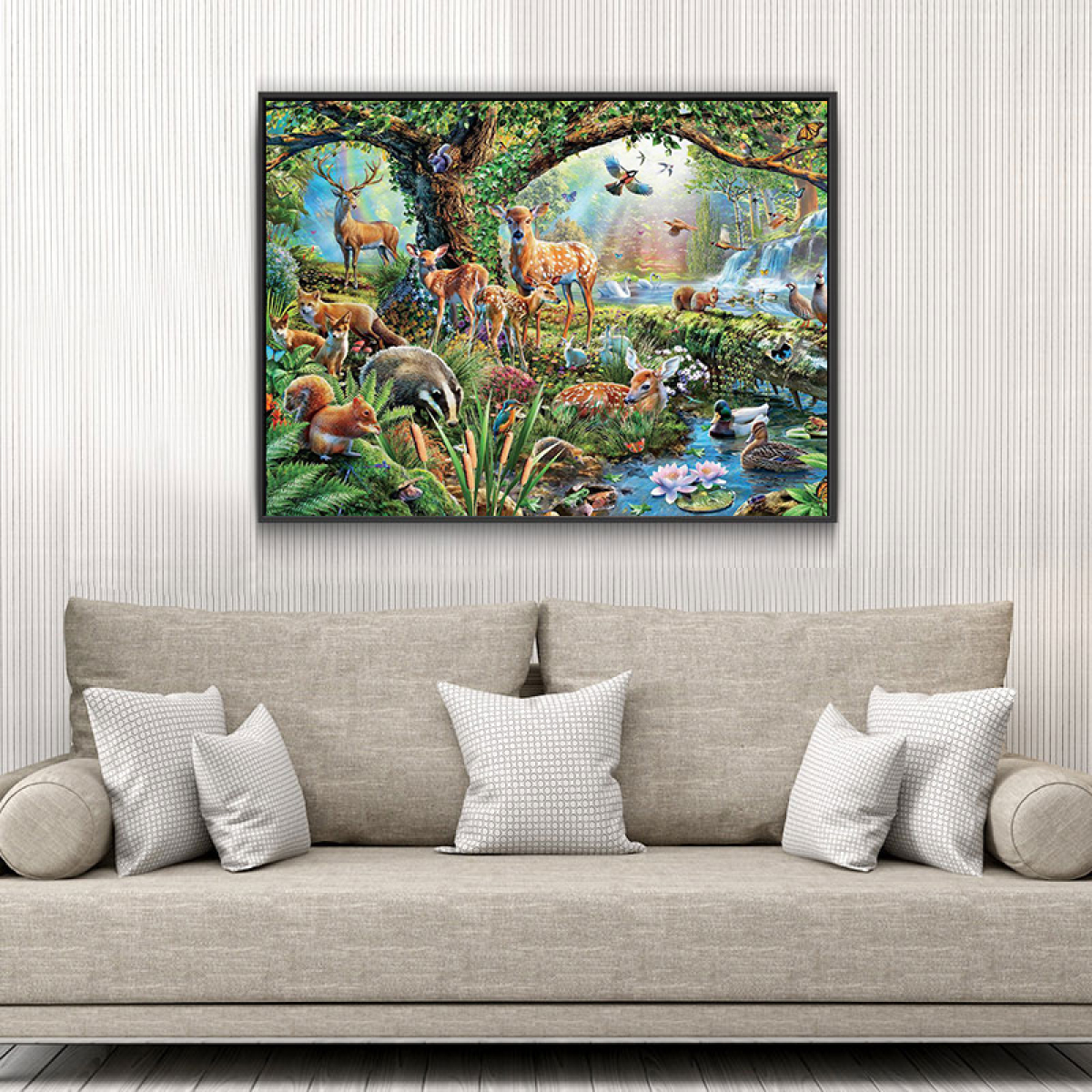 Animal Mosaic In The Forest 5d Diamond Painting, Square Rhinestone Embroidery, Cross Stitch, KBL Full Diamond