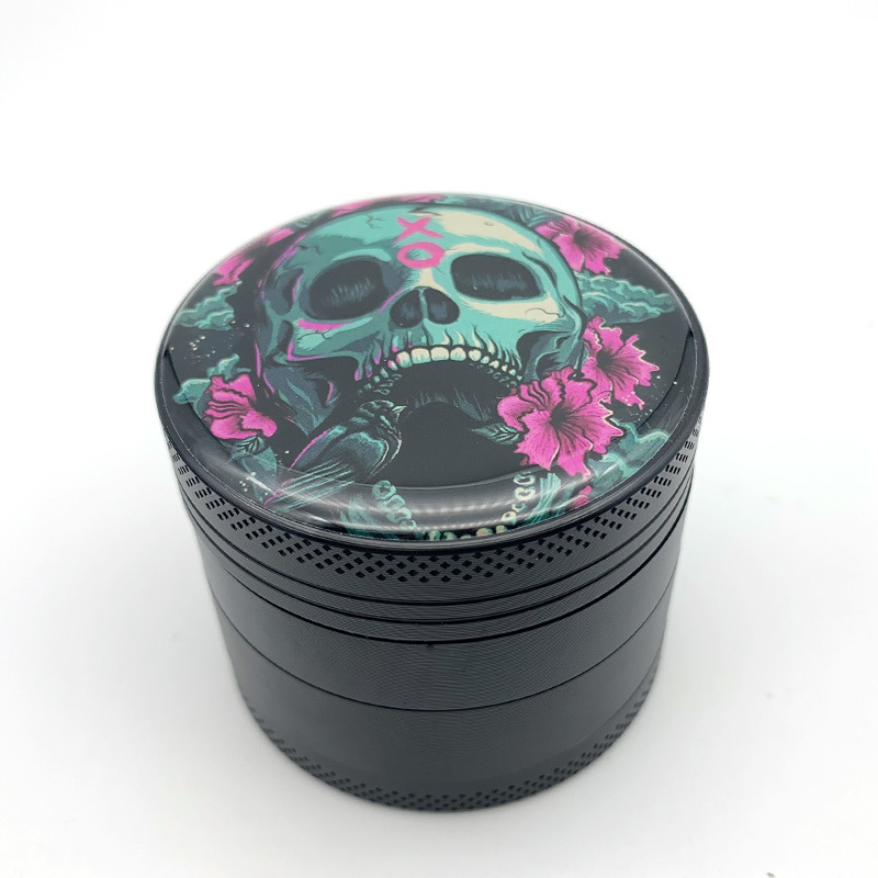 Herbal Skull Pattern Cigarette Grinder Aluminum
