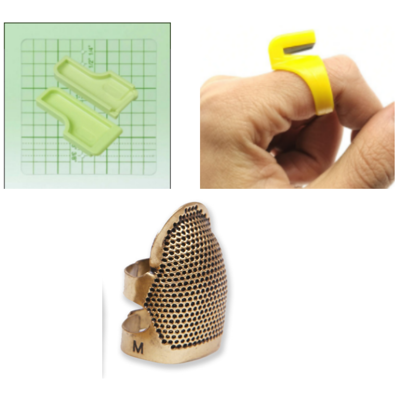 3 sets= 6 seam guide plates 3 measuring ruler + 3 cutting knife + 3 finger thimble hoop cover