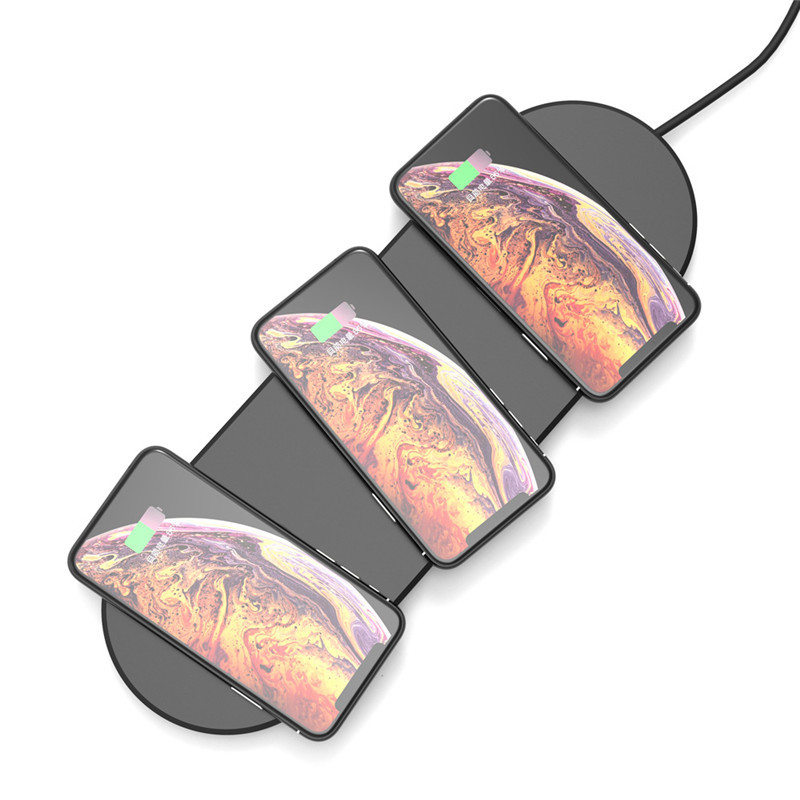 This product is suitable for all wireless charging equipment that meets the QI standard, and implements a one-to-three charging mode.