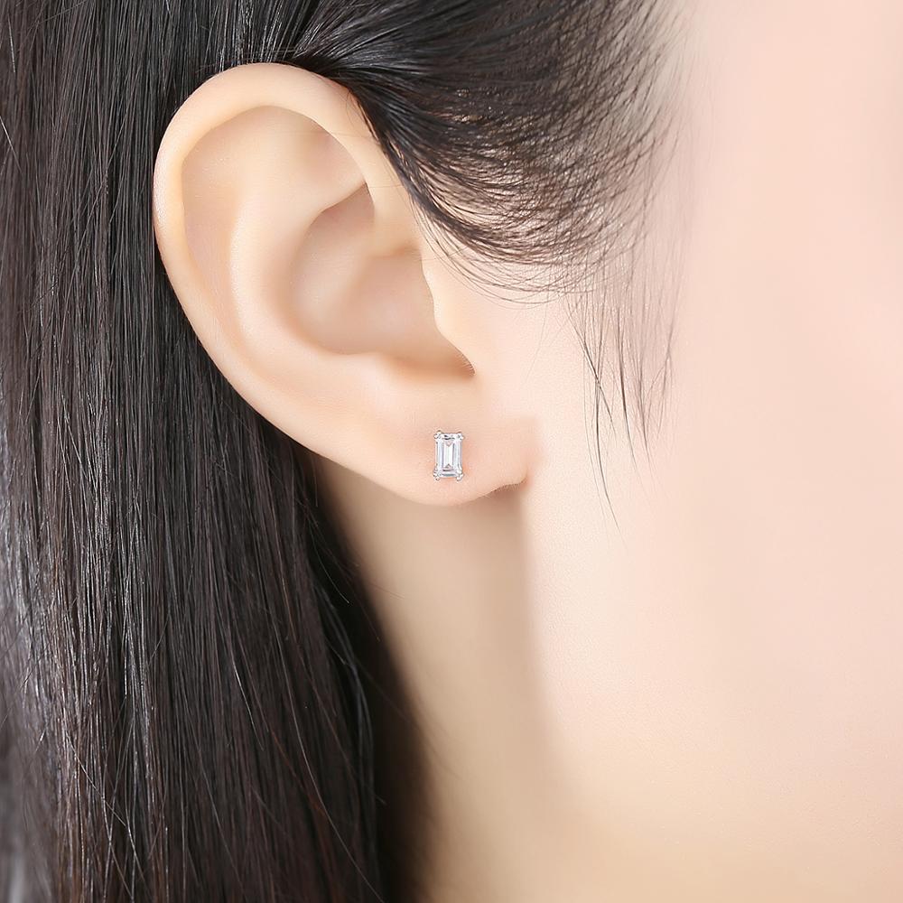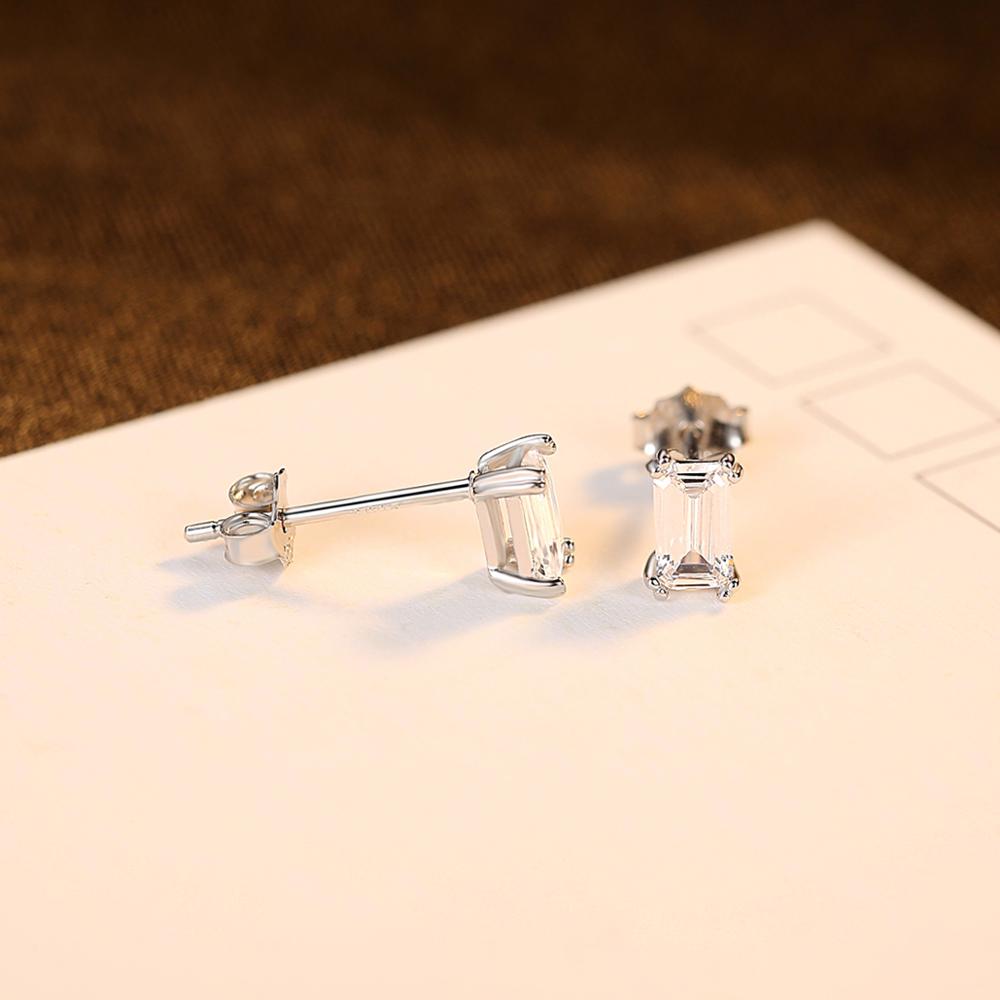 Silver-plated Rectangular Pagoda Emerald Cut Rectangular Zircon Earrings