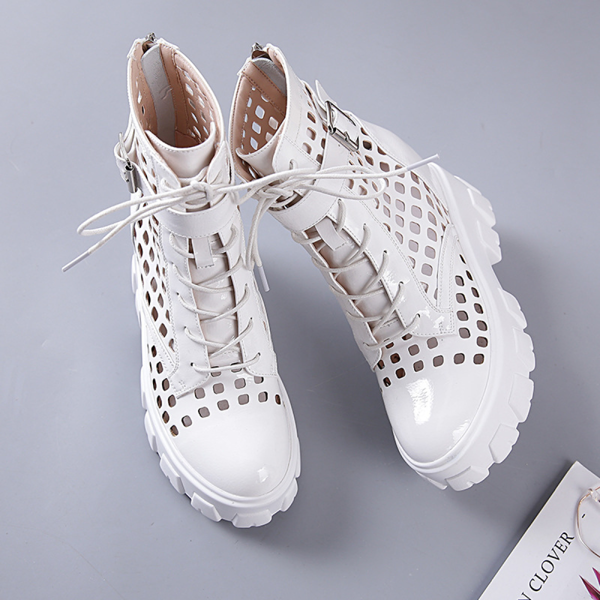 Hollow Thinner Thick-soled Inner Heightened Mid-tube Net Boots Sandals