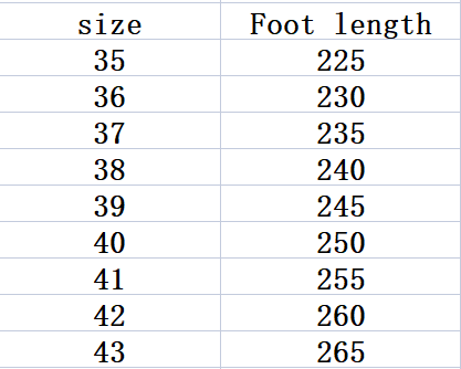 Size: 35, 36, 37, 38, 39, 40, 41, 42, 43