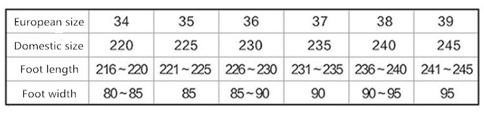 Size: 34, 35, 36, 37, 38, 39, 40