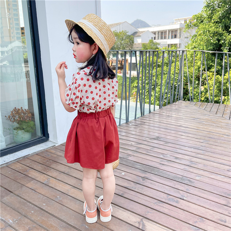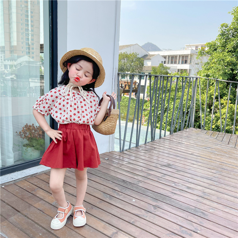 Color: DM1173032-dot doll collar shirt + red skirt pants suit