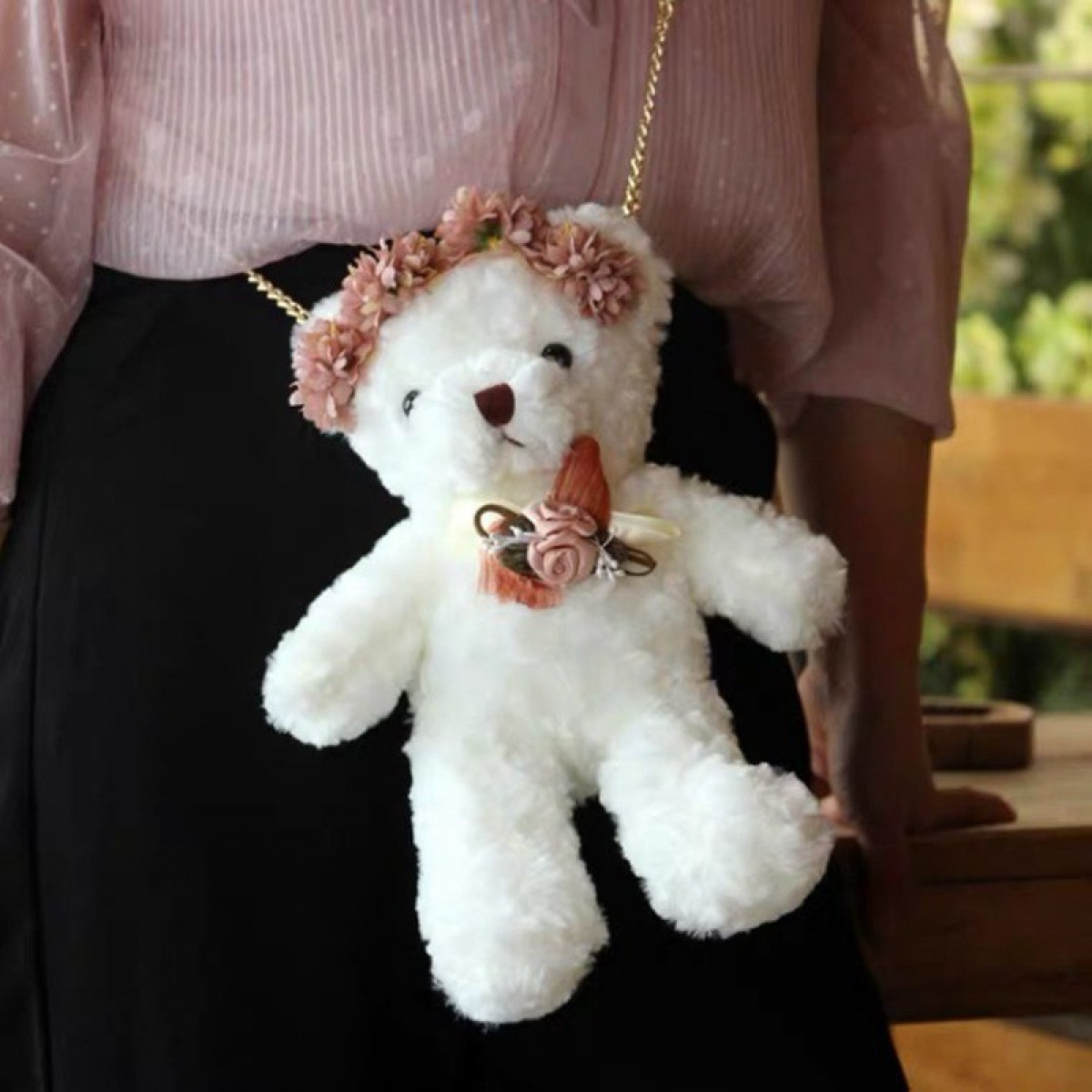 Color: White twisted flower bear [backpack + metal chain], brown twisted flower bear [backpack + metal chain]