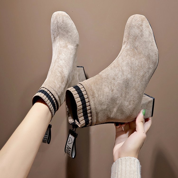 European And American Square Toe Thick Heel Short Boots
