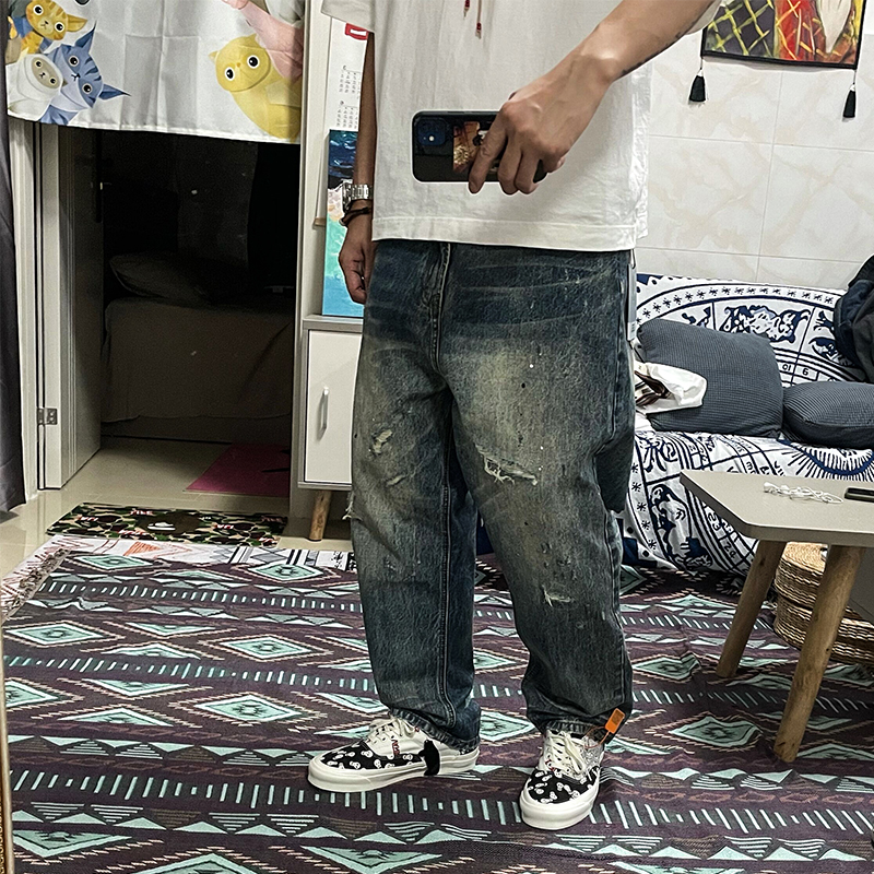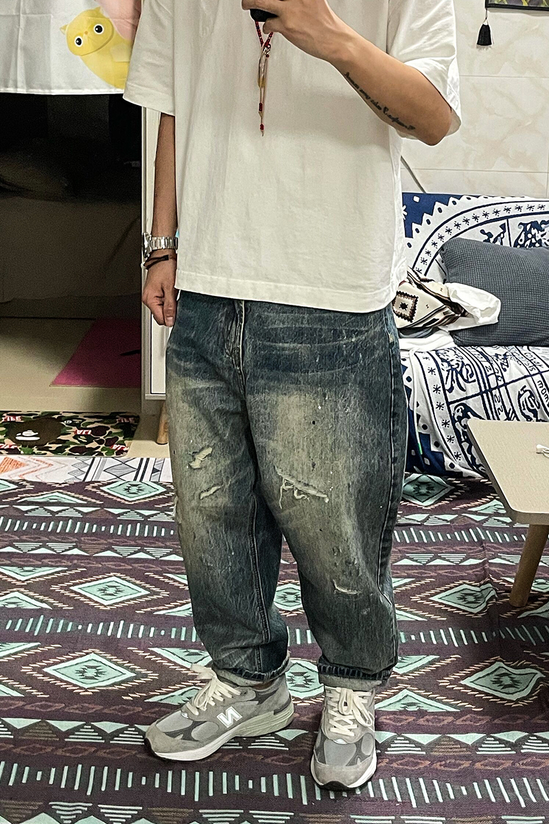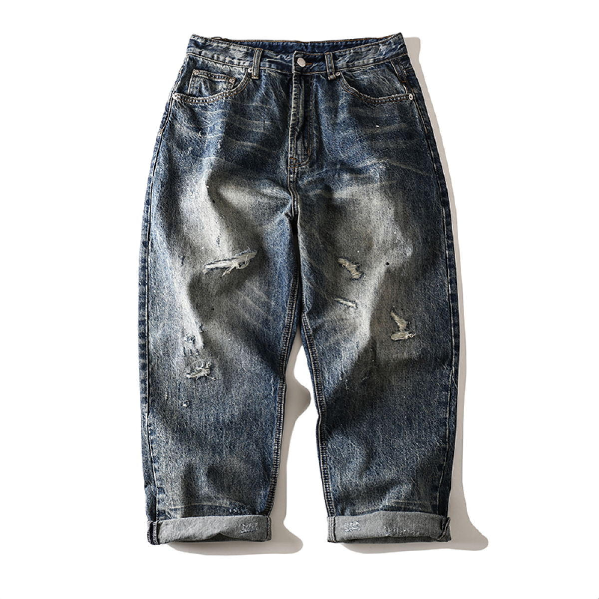 Process treatment: crumpled, bleached, cat whiskers, holes, edging, scratched, old, washed, splashed ink