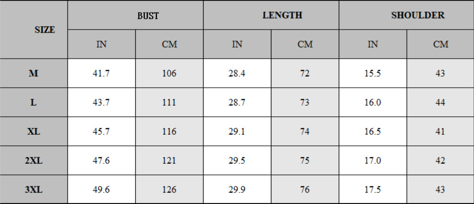 Size: M/L/XL/XXL/3XL