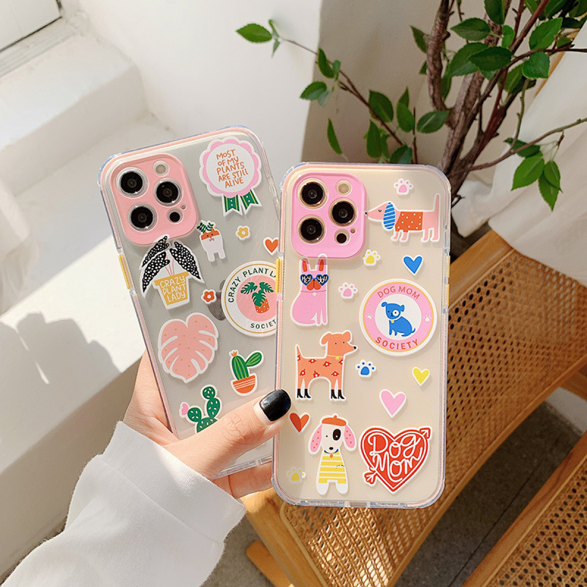 Color: potted plants, dogs