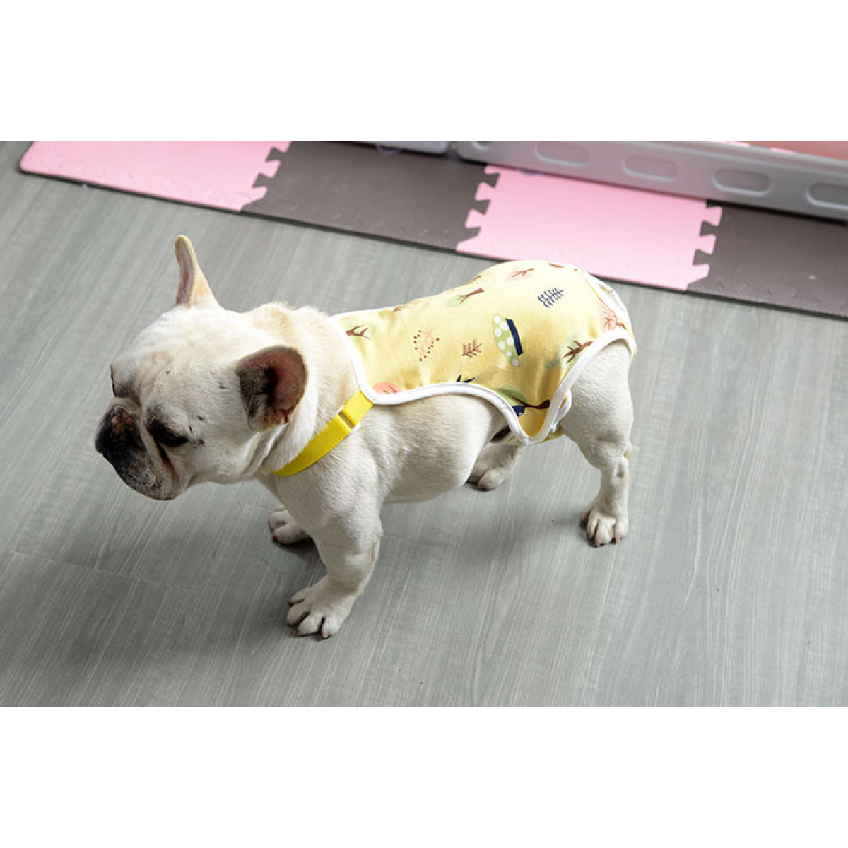 Color: yellow leaves, pink fish