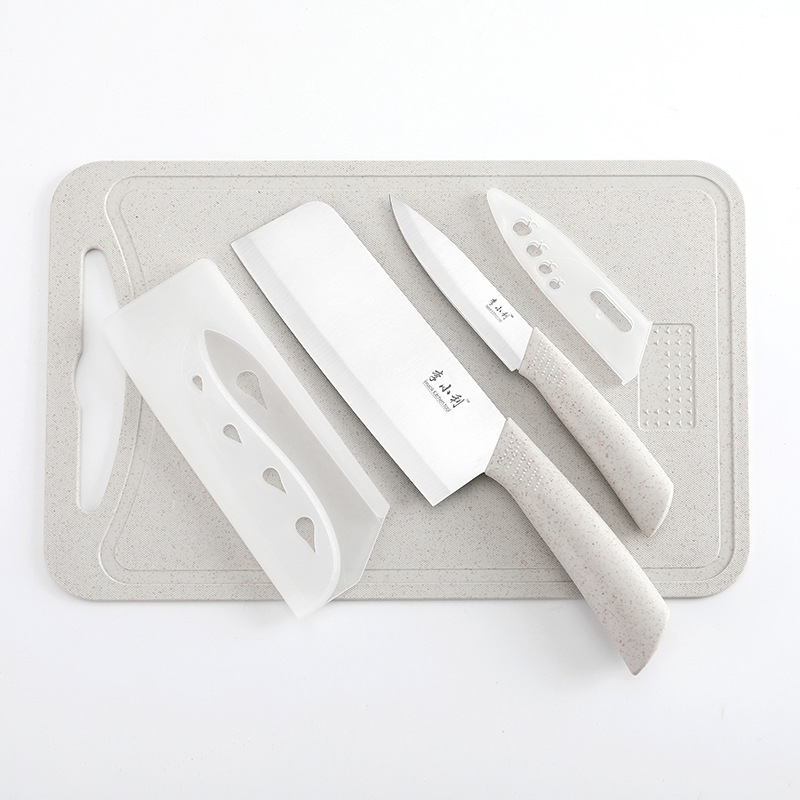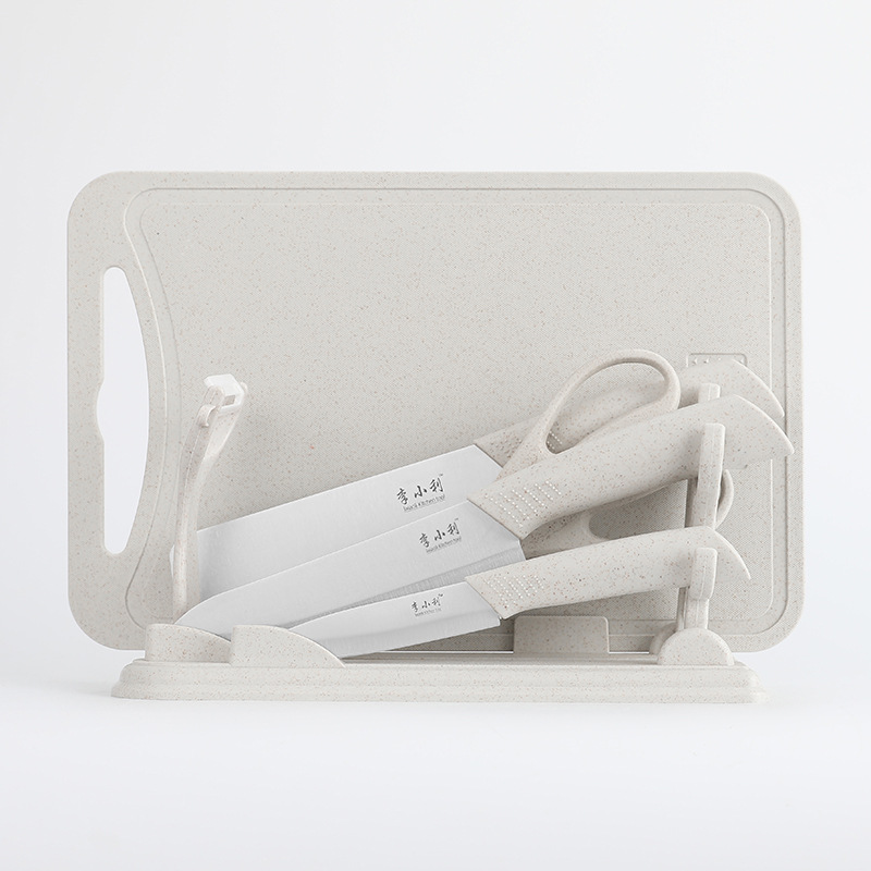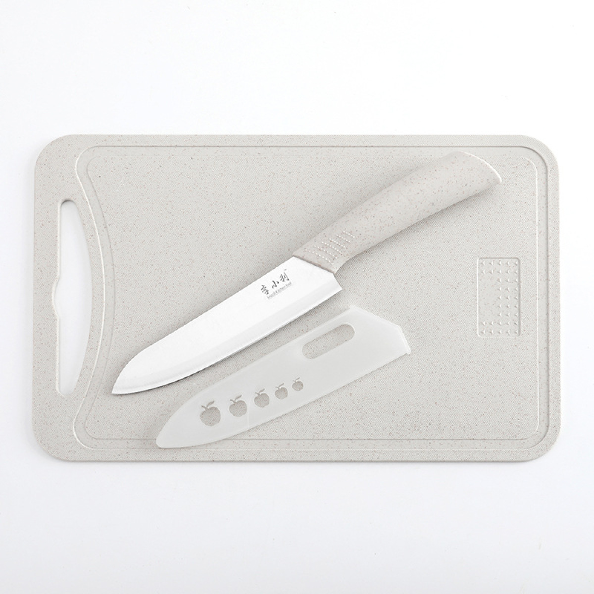 H: Nordic beige non-slip cutting board full set of knives with knife cover