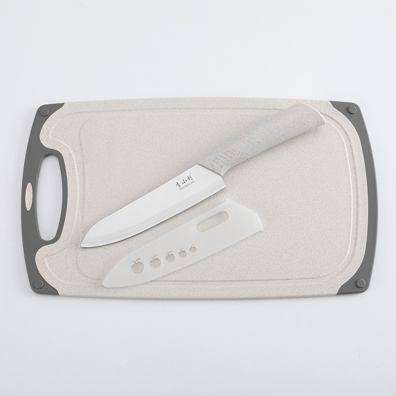 E: Nordic beige non-slip cutting board two-piece set with knife cover,