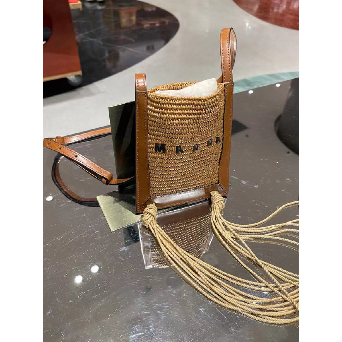 Letter Tassel Woven CrossbodyBale Straw