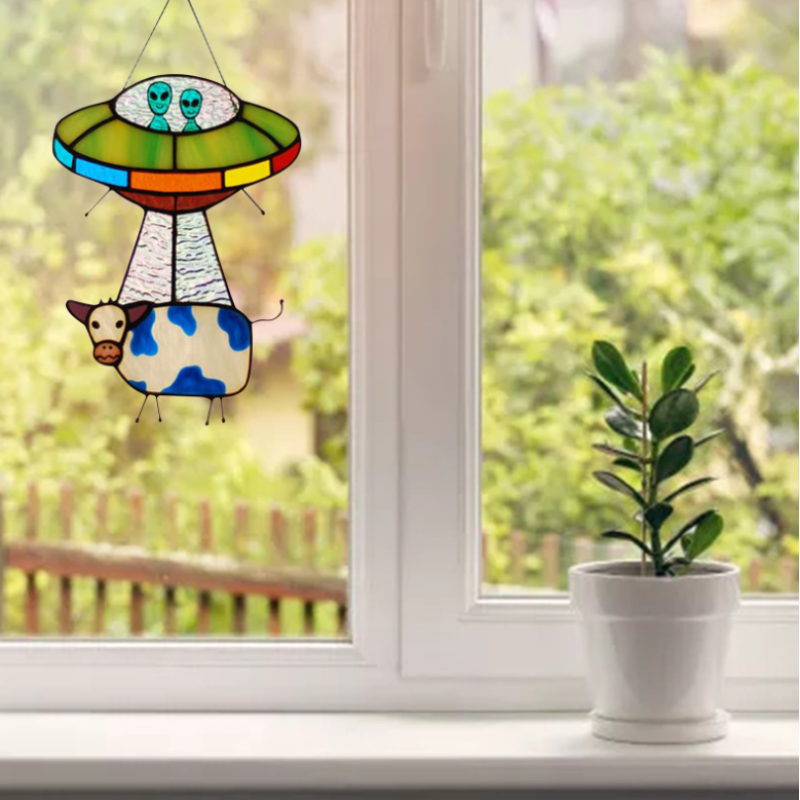 Cross-border explosion of European and American creative UFO alien cow pendant ornaments home garden decoration outdoor ornaments