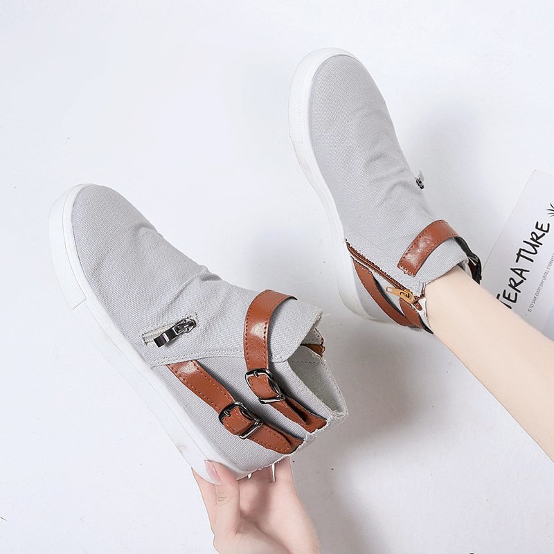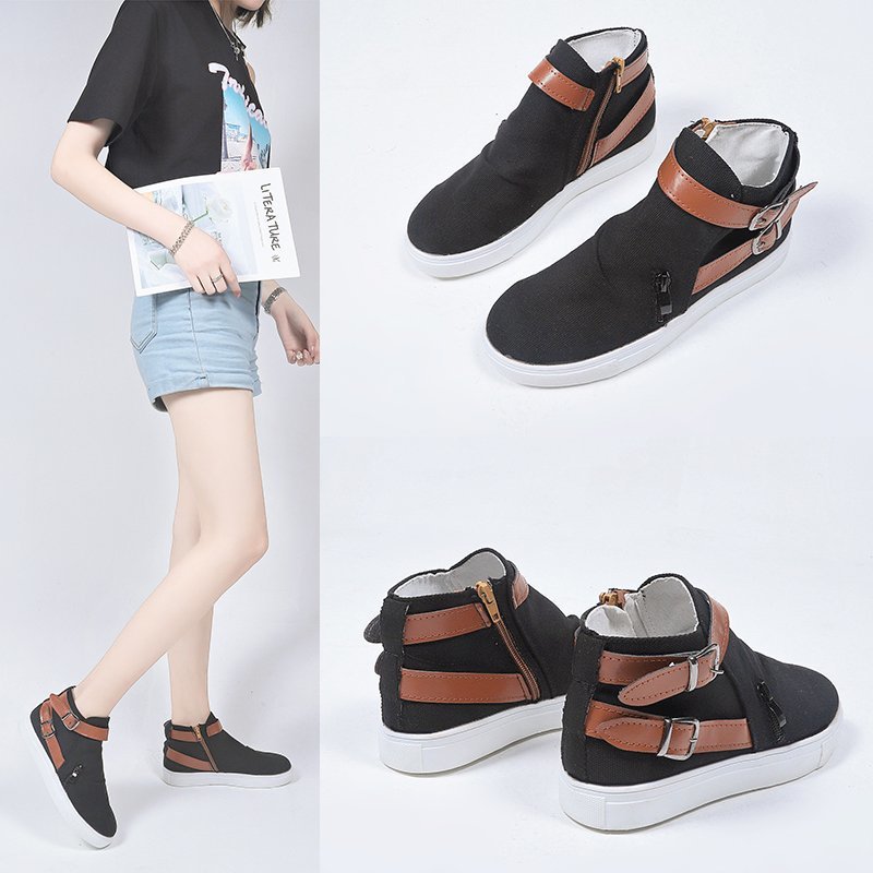 Boots: Low-cut canvas flat shoes