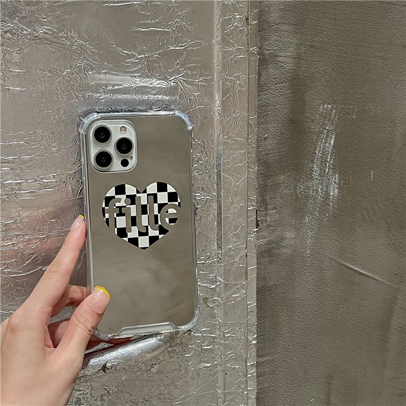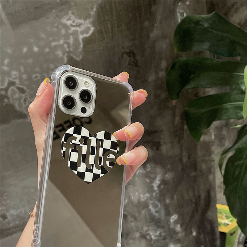 Color: fille black border plaid love heart-mirror