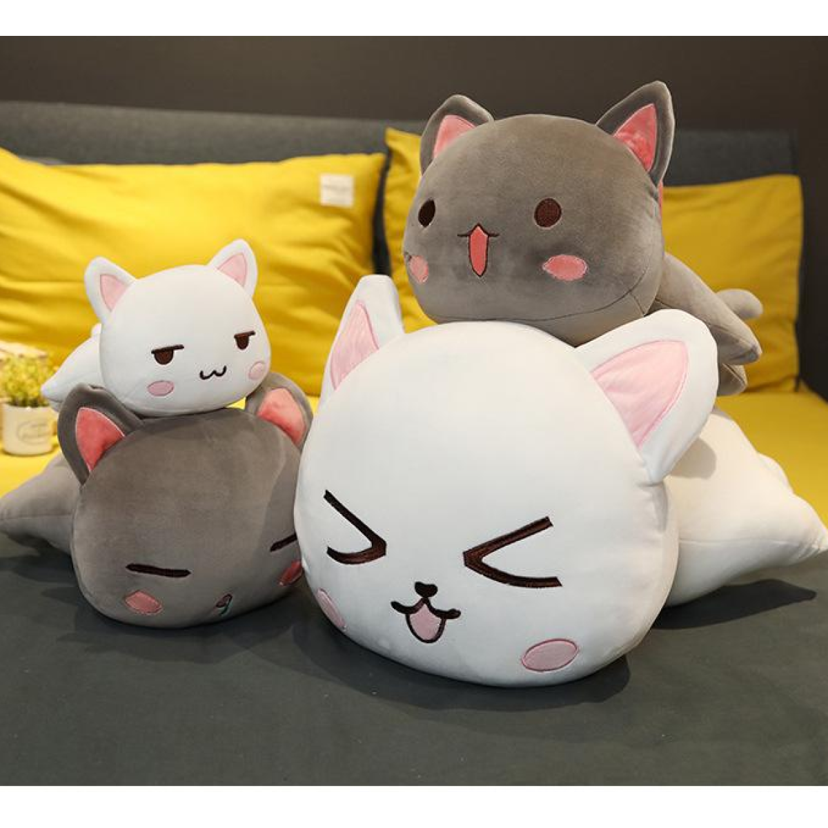 Color; white cat-cute, white cat-happy, gray cat-cute, gray cat-squinting