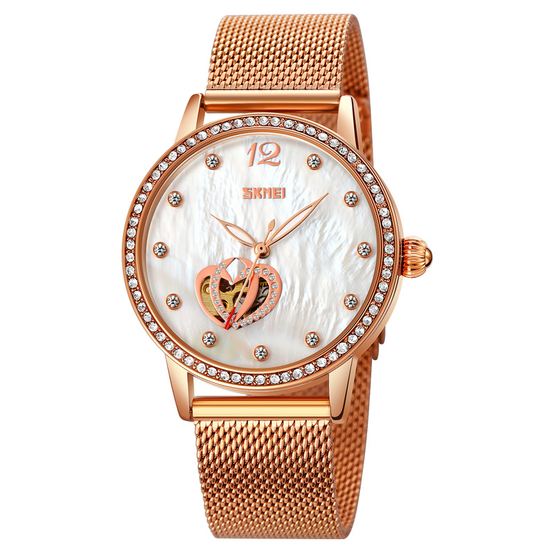 Rose Gold Luminous Watch With Mother-of-pearl Face And Diamonds