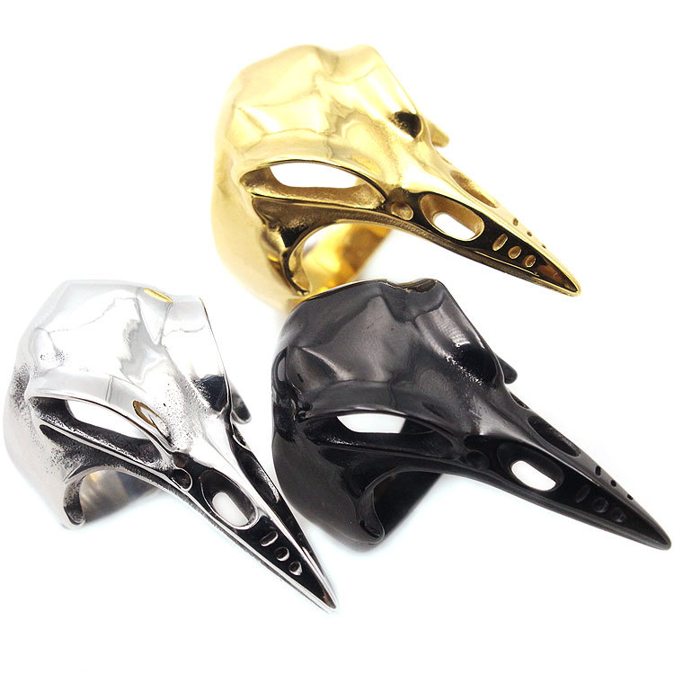 Vintage Men's Titanium Steel Ring Glossy Long Beak Bird Stainless Steel Ring