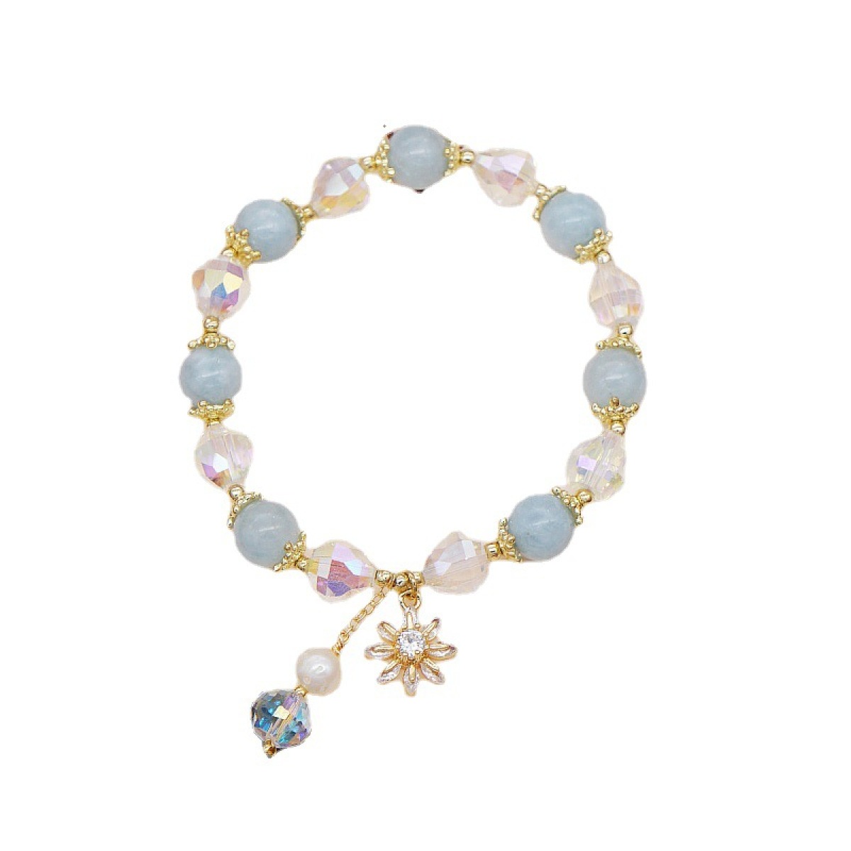 Color: Aquamarine Natural Pearl Crystal Bracelet