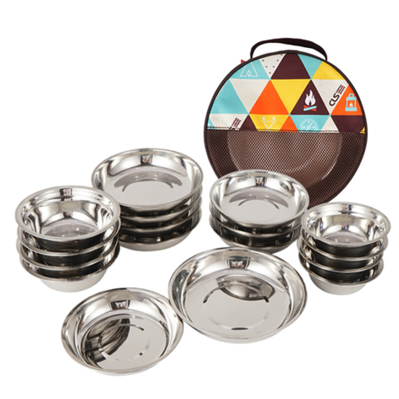 Stainless Steel Dinner Plate 17-piece Set Camping Barbecue Tableware Portable Plate Soup Bowl Dish Bowl Set