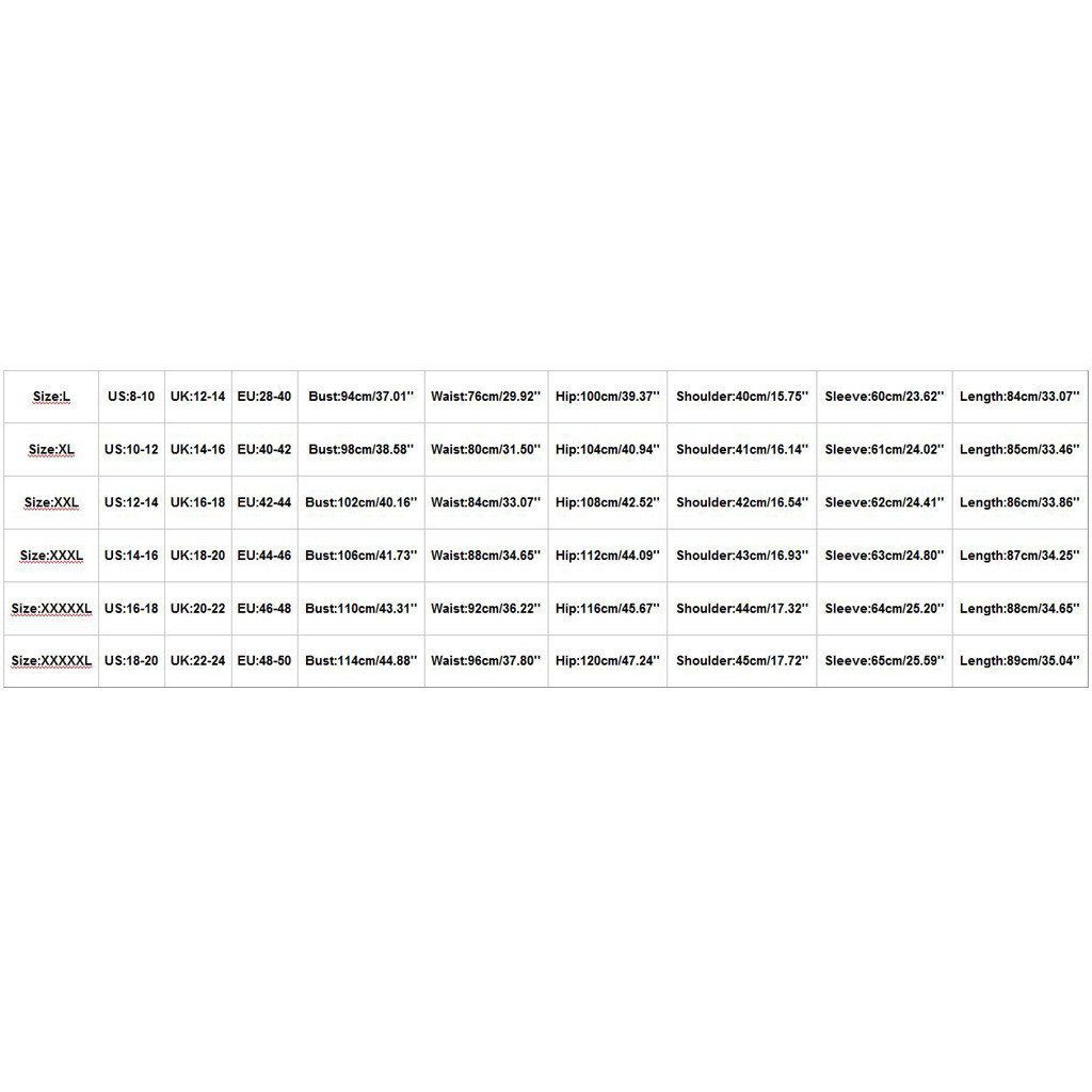 Size: L, XL, XXL, XXXL, 5XL, XXXXL