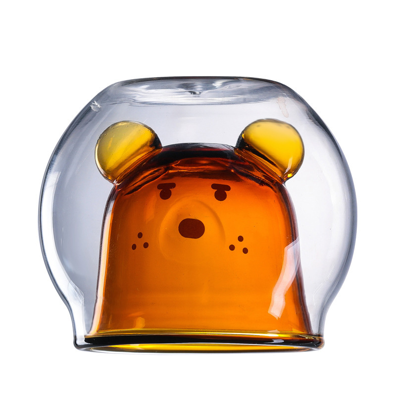 Glass Double-layer Cup With Animal Print