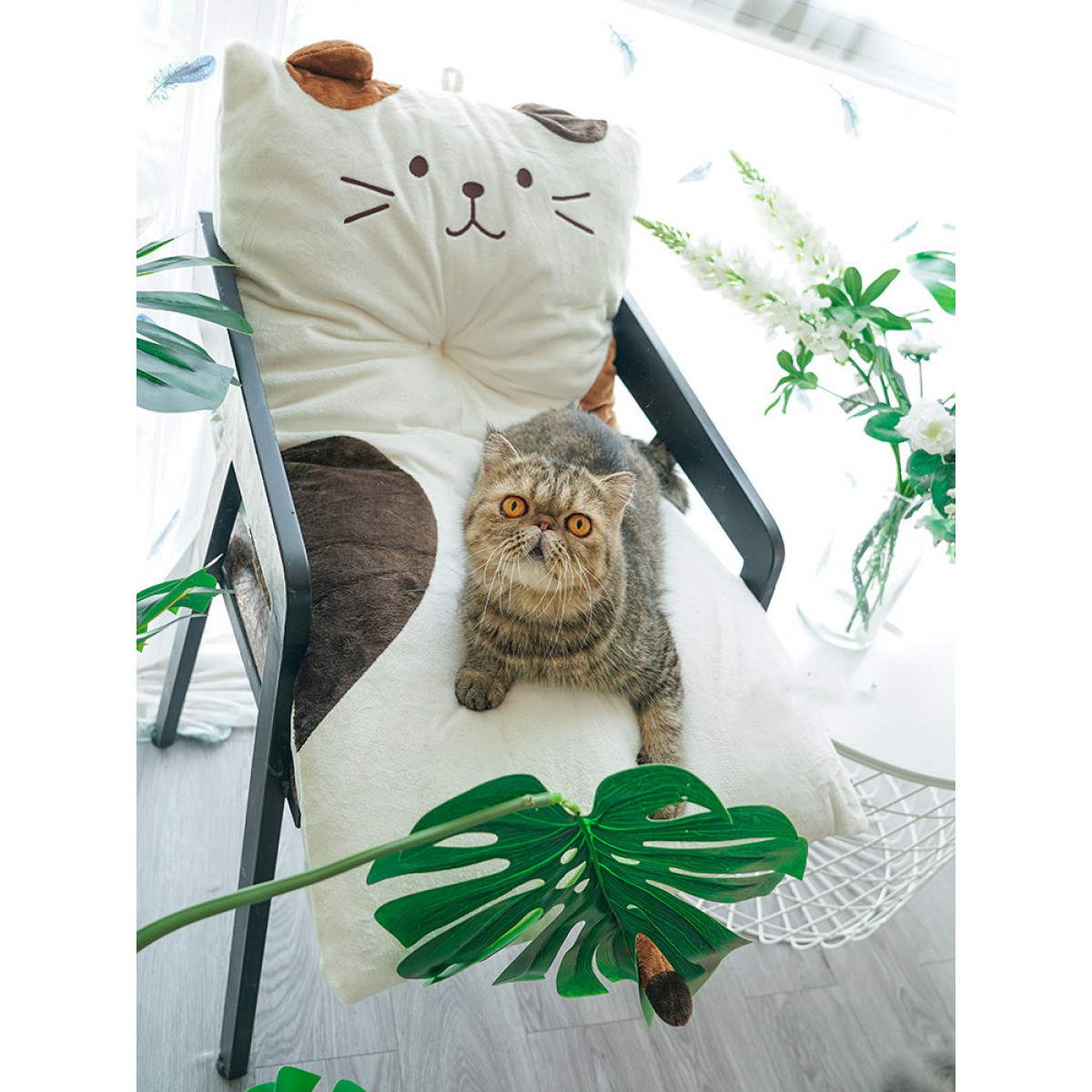 Color classification: white cat cushion, yellow cushion