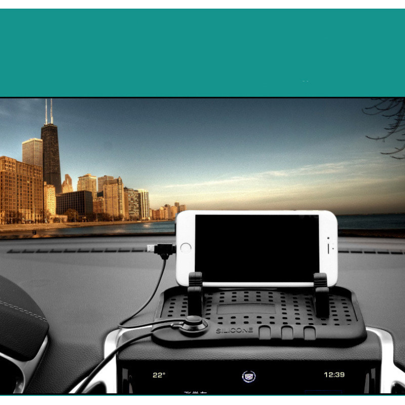Silicone charging pad bracket for heavy-duty vehicle console, screwless design, easy to install and use. There are many holes in the mat, and you can adjust the position of the bracket as needed.