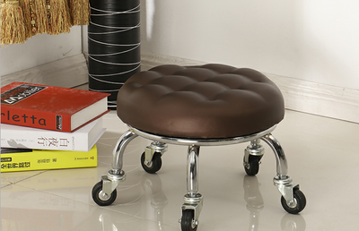 Children's Toddler Step Stool Leather Stool Small Round Stool With Wheels
