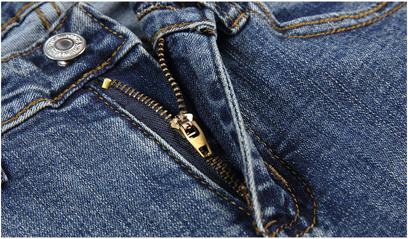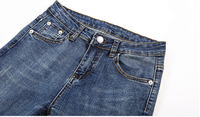 Features: flanging, washing, distressing, whitening, zippers, buttons