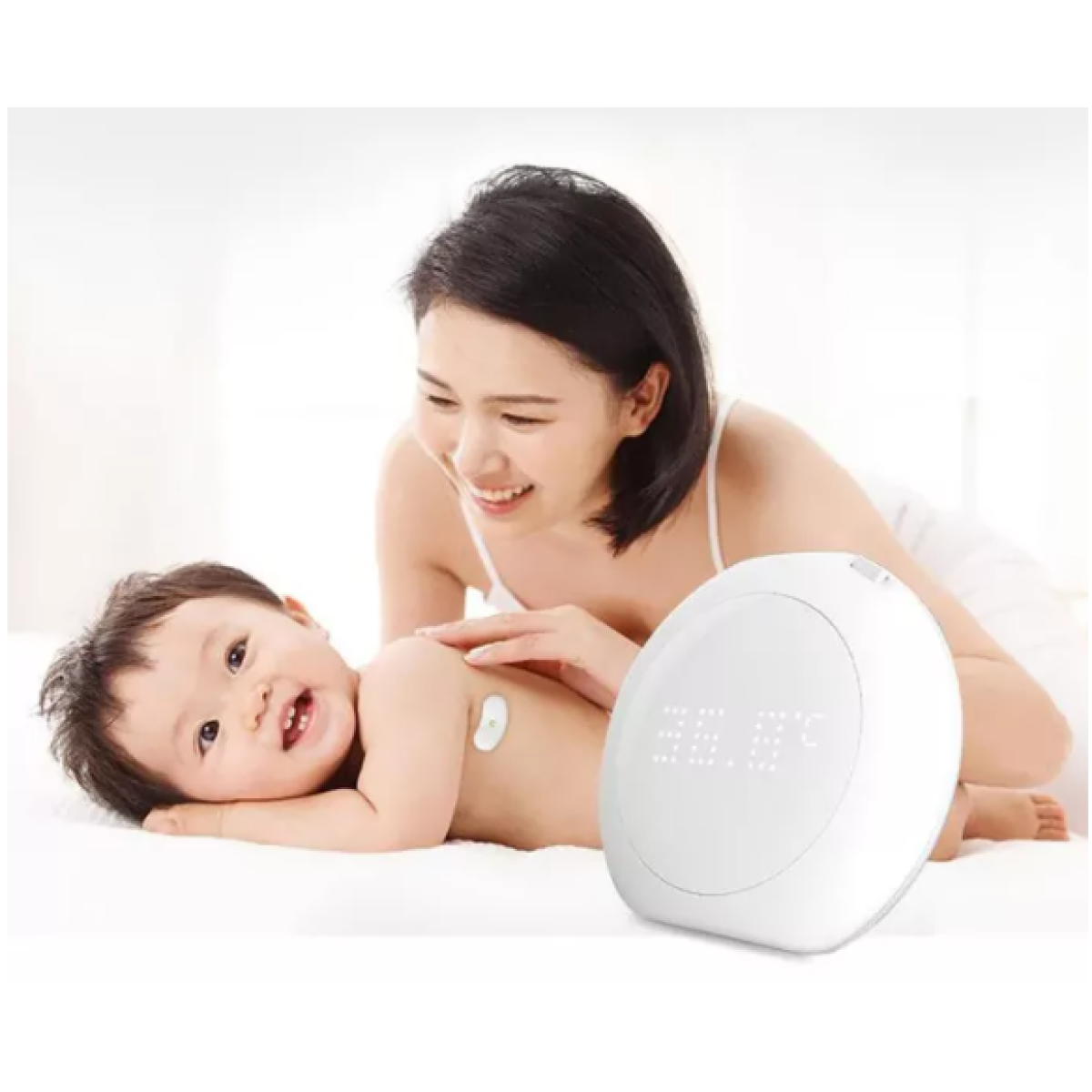1. High temperature intelligent alarm, when the baby is sick, the body temperature can be monitored continuously for 24 hours. When the temperature reaches the warning value of 380C, the temperature display on the storage box will flash red and give a warning sound