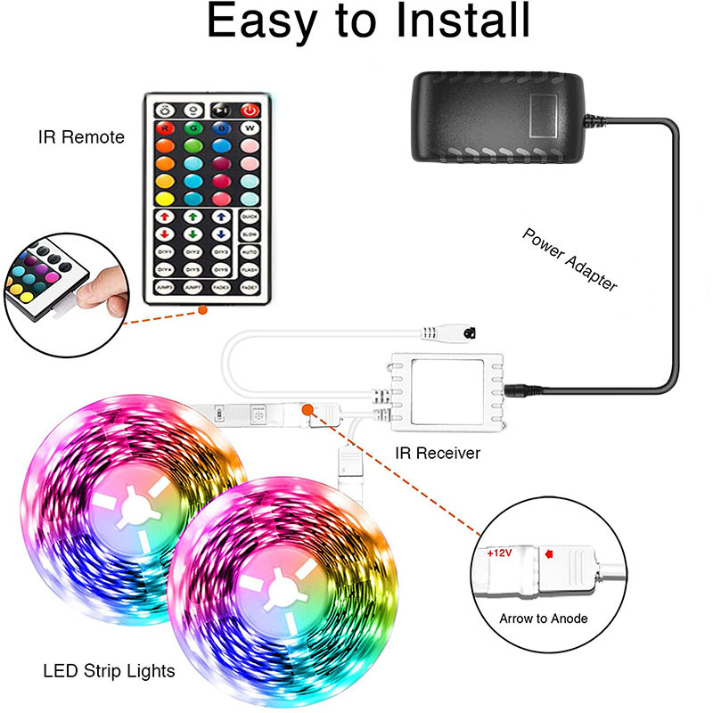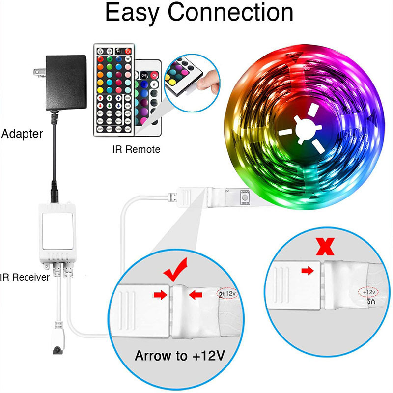 Packing list: Light belt 5-20 meters (5 meters/roll) /44 key Bluetooth X1 + power adapter X1